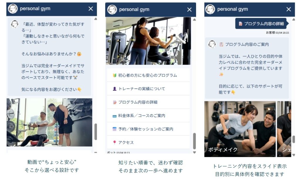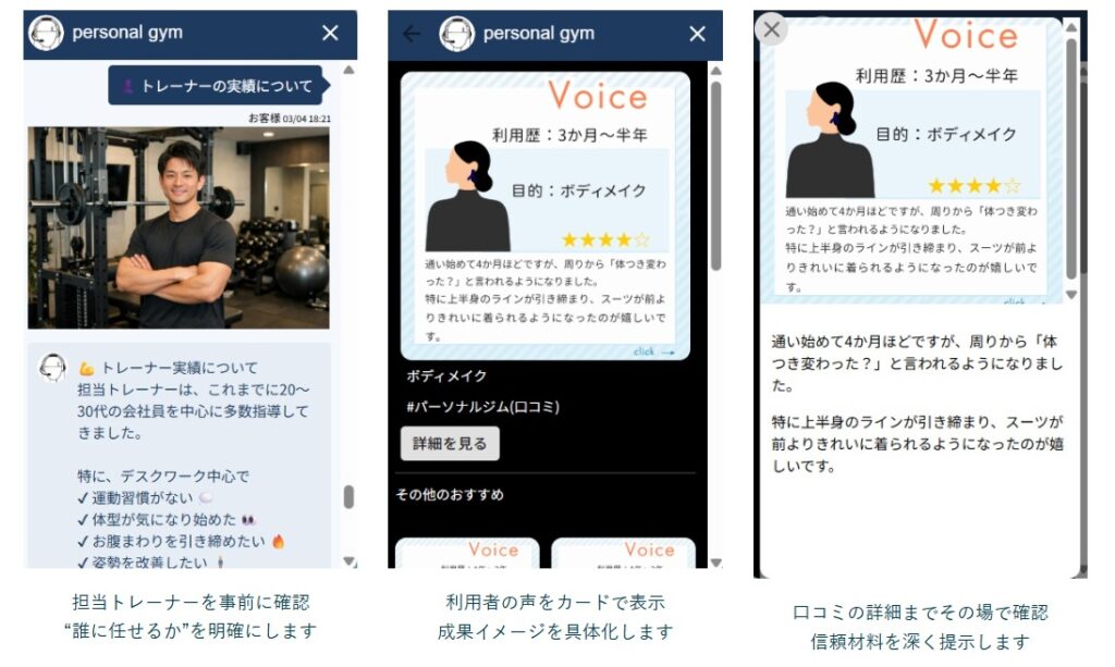 来店前の段階でトレーニング内容やトレーナーの情報を分かりやすく伝えることができれば、